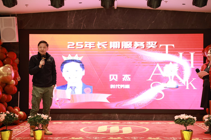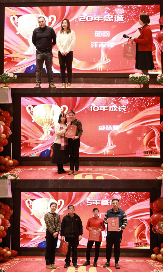 晚宴期间,公司给5-10-15-20-25年忠实服务的员工颁奖并赠送礼品,表彰他们多年如一日在各自工作岗位上的辛勤付出与卓越表现,向他们表达诚挚的敬意与衷心的感谢。